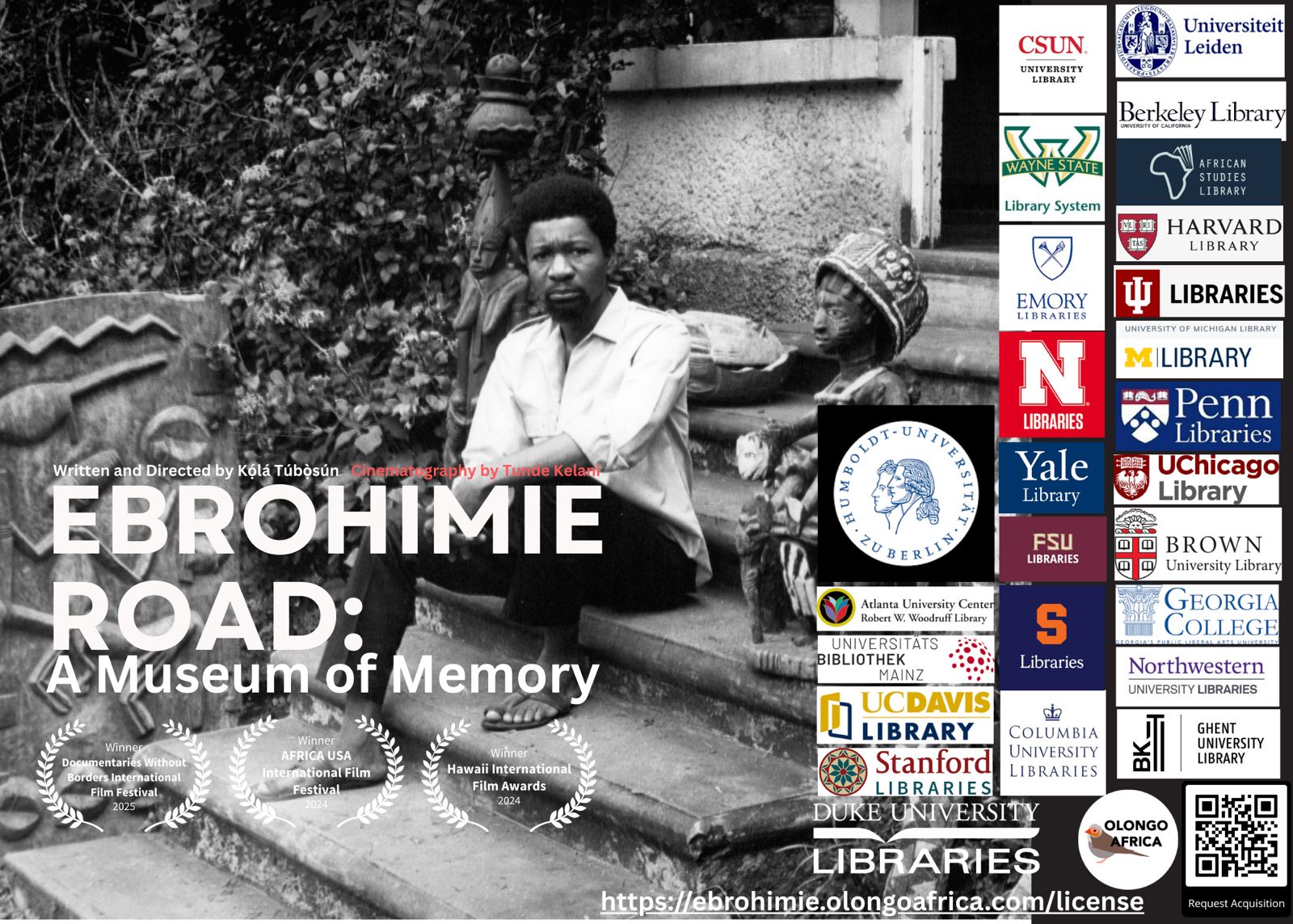 Your institution can now acquire the film as part of its library collections, either as physical DVD or as a digital file for use by students, researchers, and scholars. Please check out the options below. Discounts exist for non-US universities (Europe, Asia, etc), as well as independent researchers, non-profit and educational institutions in Nigeria and elsewhere in Africa. (We’re especially interested in no-cost non-profit screening opportunity to showcase the film to students and others around the continent). Please send an email to publisher@olongoafrica.com to request it.